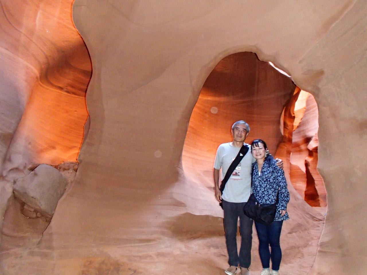 滞在二日目は、ホテルから15分ほどのアンテロープキャニオンに朝一で向かう。アッパーとロウワーとふたつのアンテロープキャニオンがあるようだけど、御一行様が少なく探検ムードも大きいということでロウワーに行くことにする。