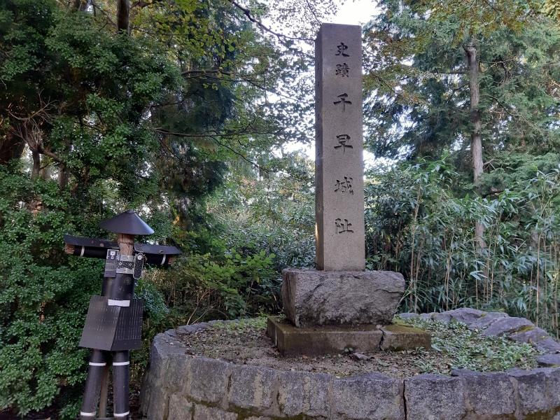 やっと千早城址へ到着。と言っても、城跡としてはこの碑と素朴な鎧武者のお出迎えですが。