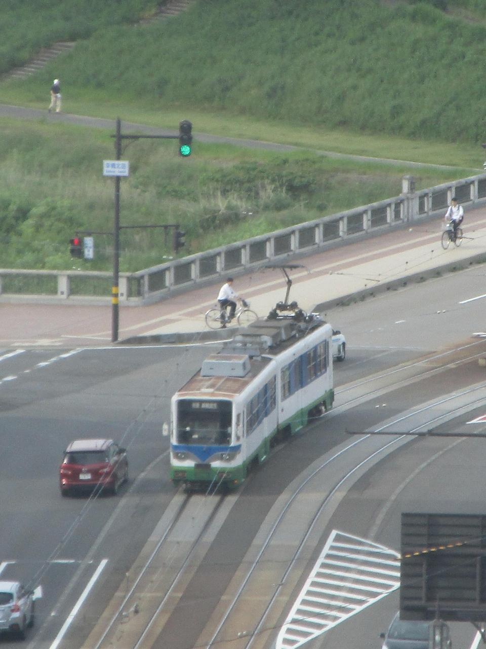 チェックアウトの直前、眼下の電車通りに「RETRAM(レトラム)」こと福井鉄道F10形電車がやってきました。