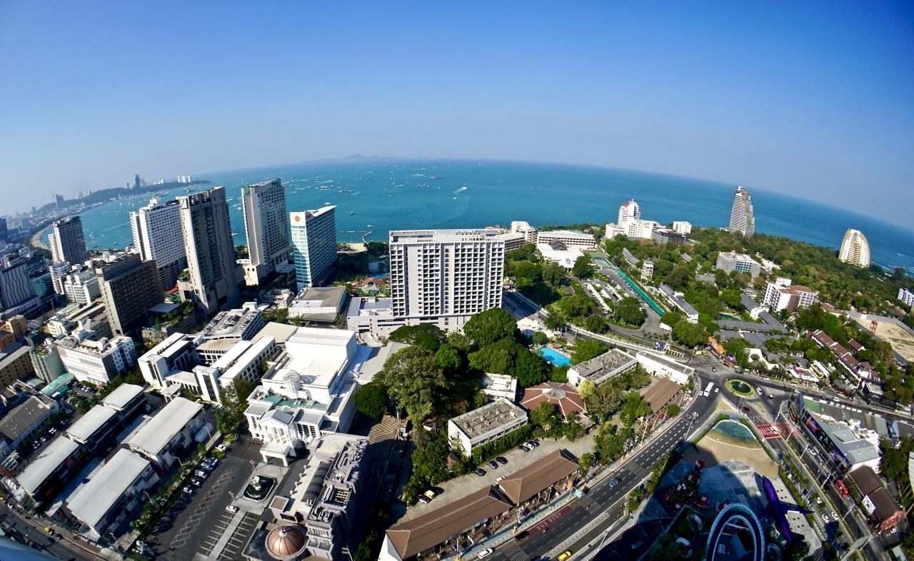 パタヤで一番高いビルのトップリーフから街を眺め下ろす~!(一周できます)VTSIX コンド レンタルズ アット ビュー タレー 6 パタヤ ホテル