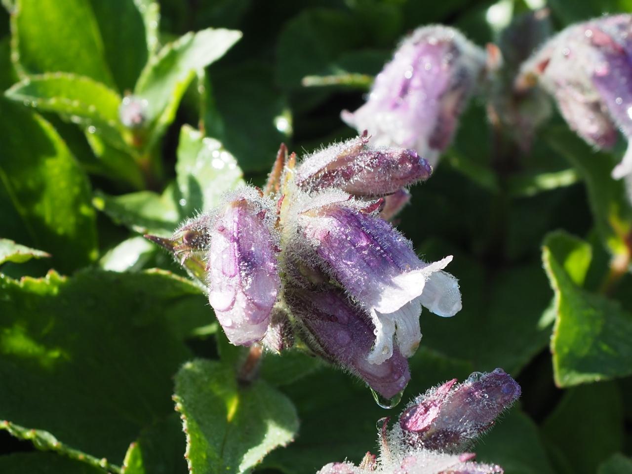 アップで見ると雨露で白い毛が一層明瞭に。フワフワして気持ち良さそう。