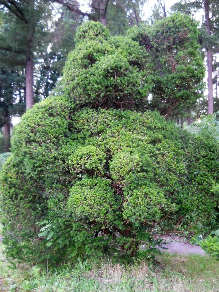 【ご参考】ちなみに同じ旧南部藩のエリア内ですと、岩手県の玉川村に趣味でアート植木を楽しんでいる御仁がいらして、その方の作品は上の写真のような感じ(これは2017年11月撮影)になっていました。これなら「不気味」じゃなく「楽しい」ですから、リゾートに並べても大丈夫ですね。