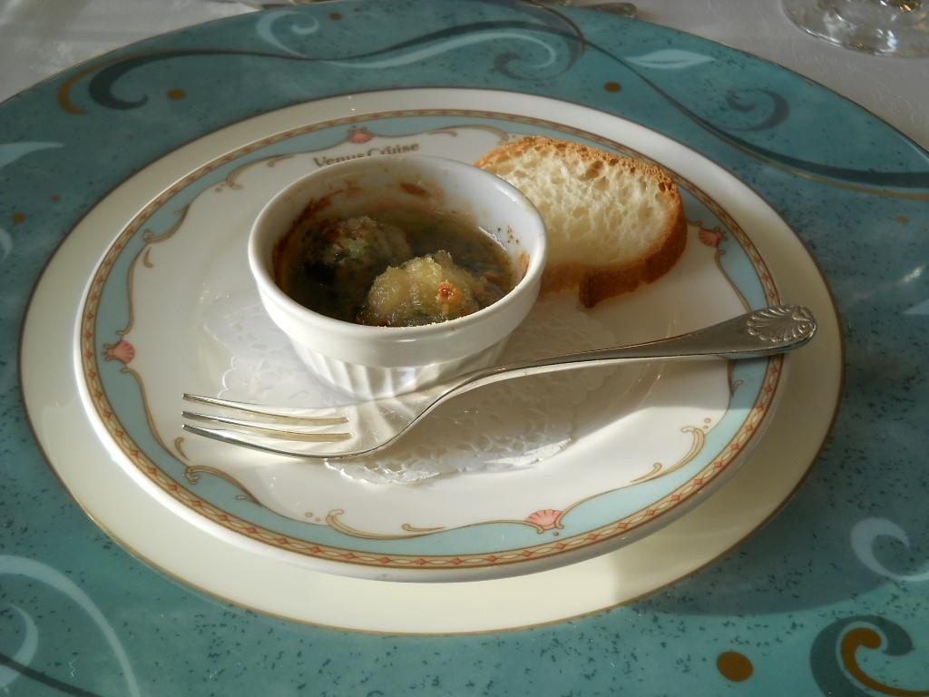 乗船早々の17時半からディナーです。で、まずは蛸のヴルギニオンを。