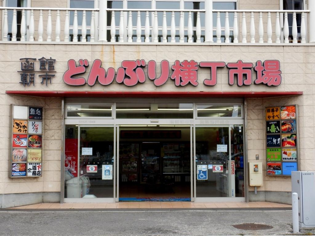 空港から450円のシャトルバスで駅へ向かい、目指すはもちろん函館朝市!