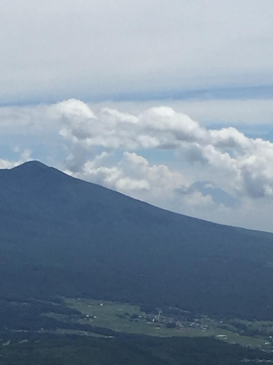 八ヶ岳のすそ野に富士山が顔を出してきた(^_^)