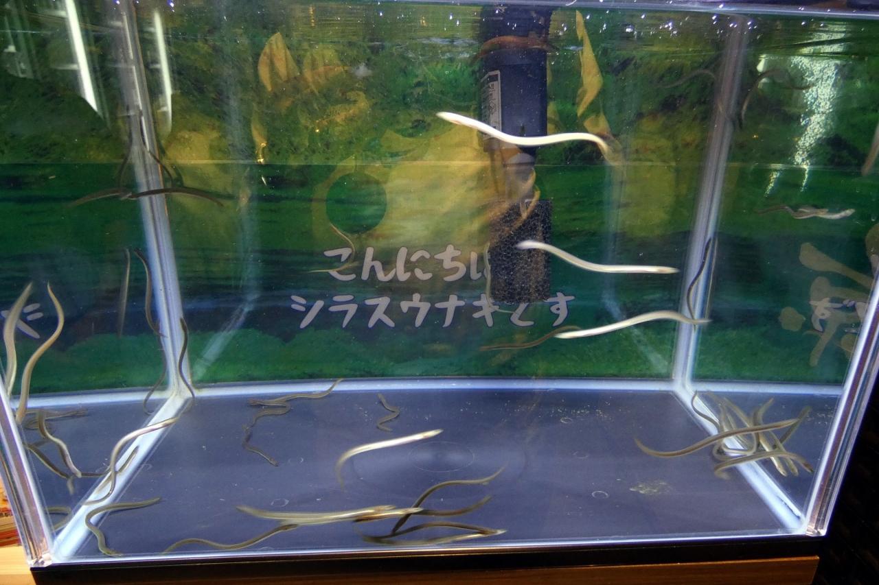 お会計のカウンター横にはシラスウナギが泳いでいました