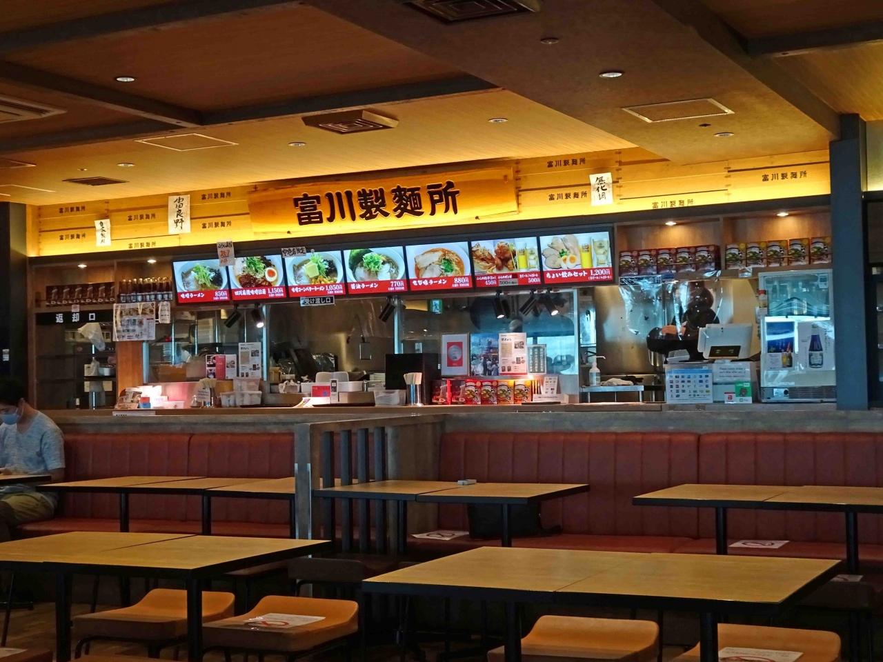 チェックイン後、簡単に昼食です。 北海道ですが今回一度もラーメンを食べていないことに気づき、フードコート風でしたがラーメン店へ。 富良野ラーメンとのこと。 独特の色の濃い麺でした。