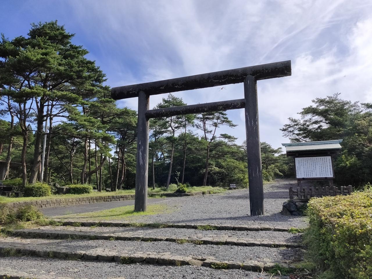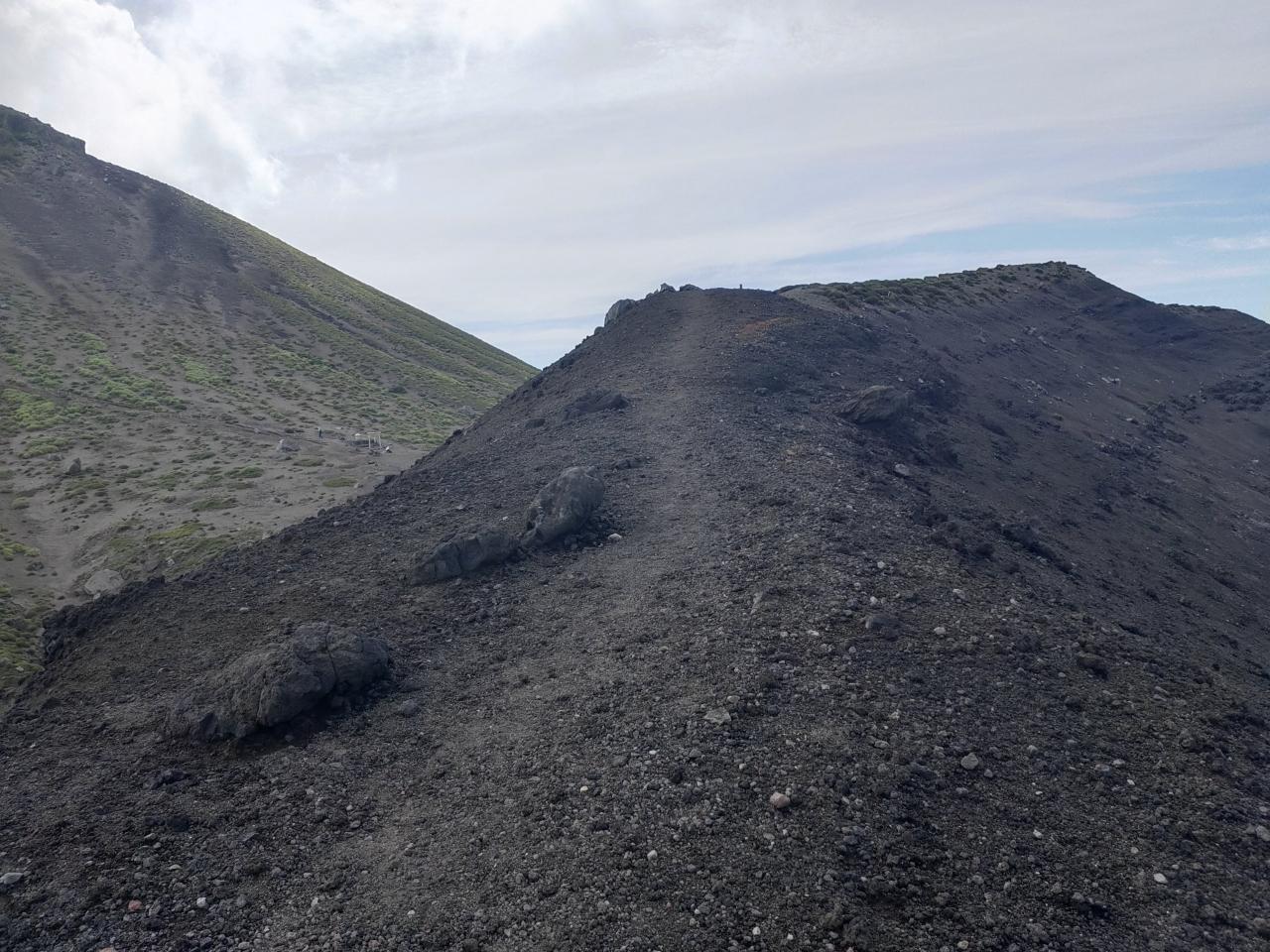 馬の背を歩き、ここから最後の急勾配を登ります。写真では緩やかに見えますが、実際は絶壁に見えますよ。さぁ神様に登山祈願をして出発!