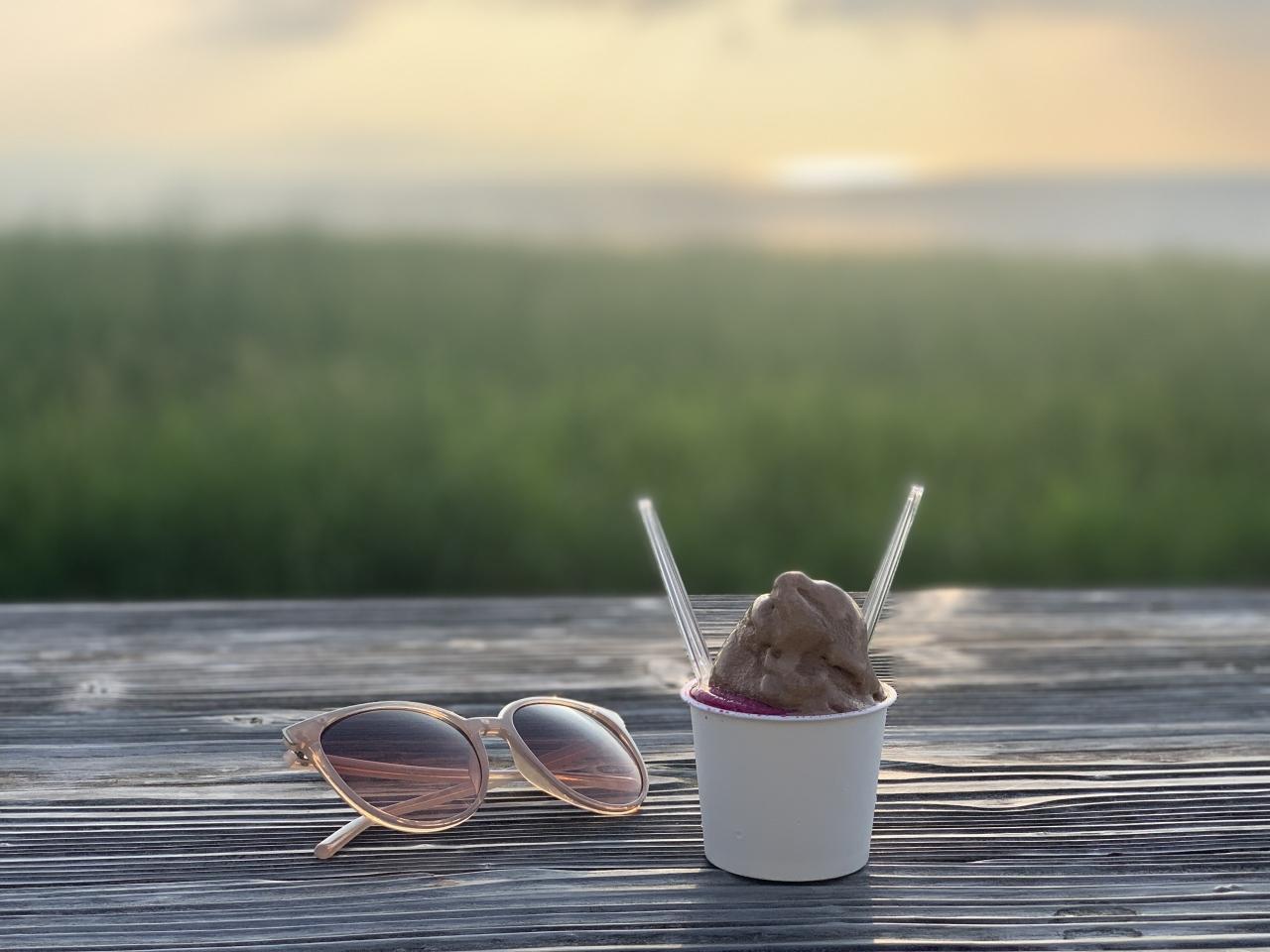 ジェラートを食べた後も、外でしばらくぼんやりしていました。 -