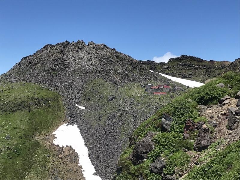 しかし、残念ながら山頂裾右下に見えている御室小屋はコロナのため休業。