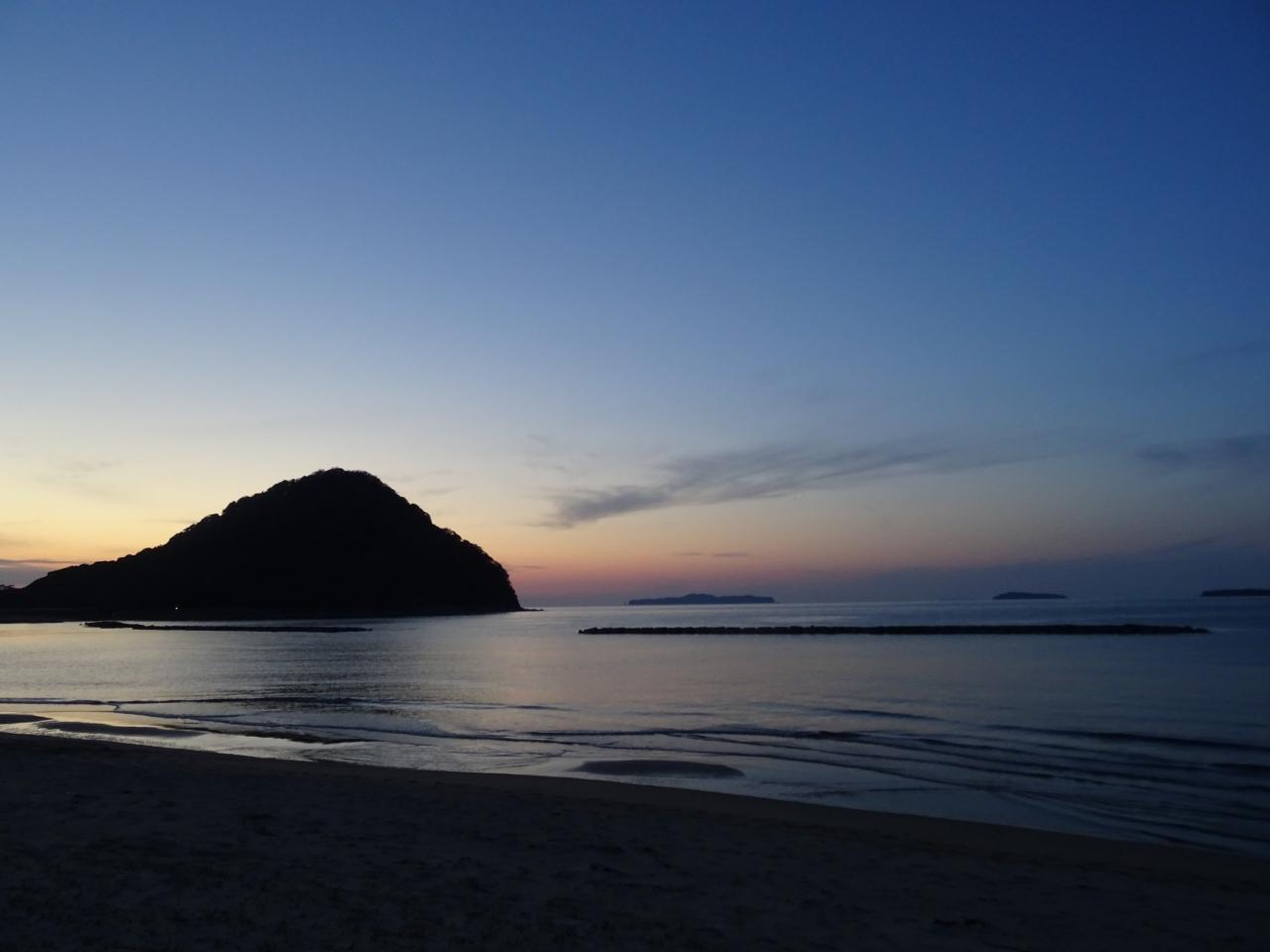 日本海と空の青、そしてそこに沈む太陽のコントラストが何とも美しくため息が出ます…。