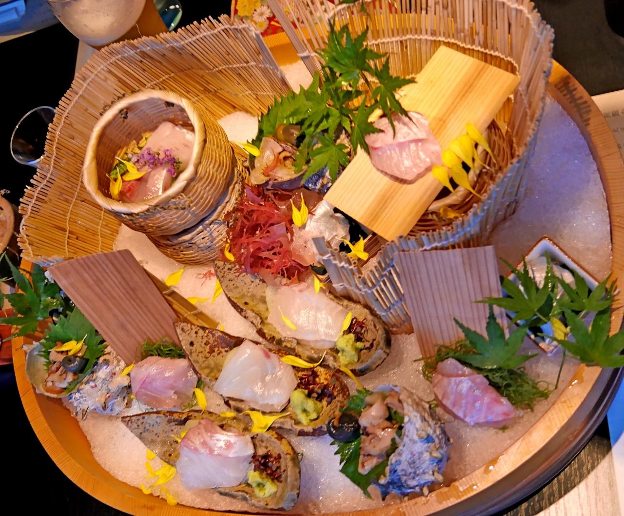 内房で昔から行われていた簀立て(すだて)漁。その先駆けだった先々代の魂を受け継ぐ、名物の創作料理「江戸前簀立て盛り会席」は、江戸前の食材と郷土の味わいを、遊びごころいっぱいの盛り付けでご提供する、旅館かわなの名物会席膳です。 -