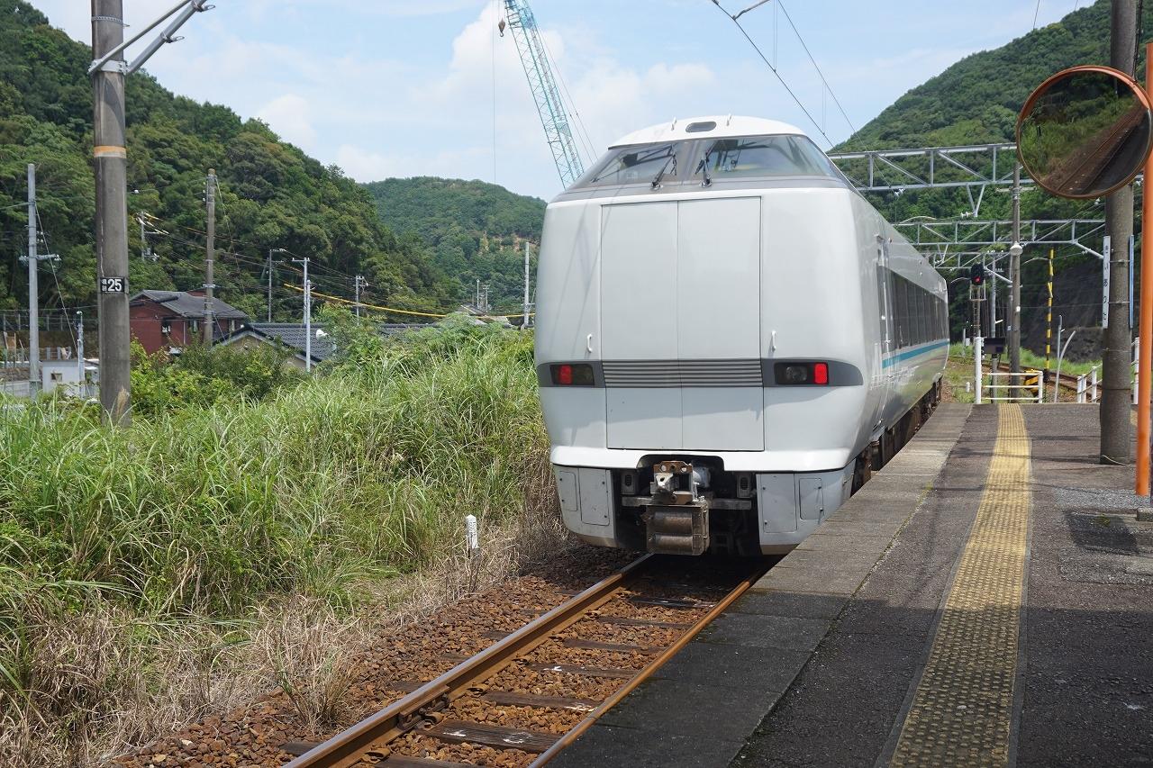 列車待ちをしていると、特急くろしお号が、JR新宮駅へ向けて、通過していきました。 -
