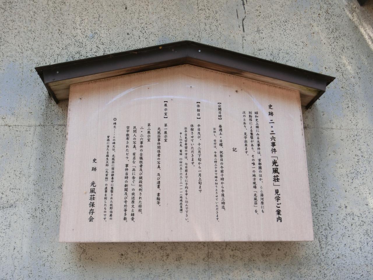 この光風荘は、二・ニ六事件が起きた場所の一つ。 -