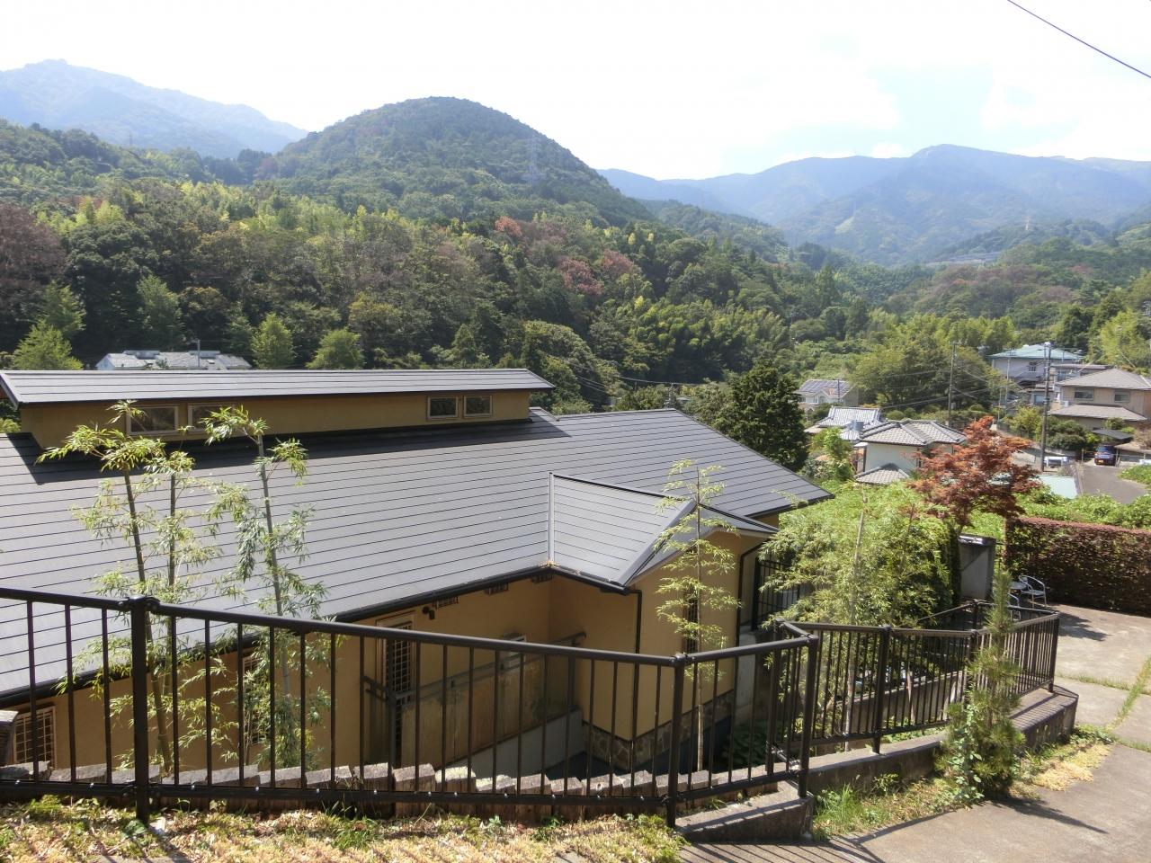 郊外の高台に位置し、周辺は緑の山々に囲まれ、ひな壇状に区割りされ、各戸から湯河原の町並み越に相模湾を遠望します。