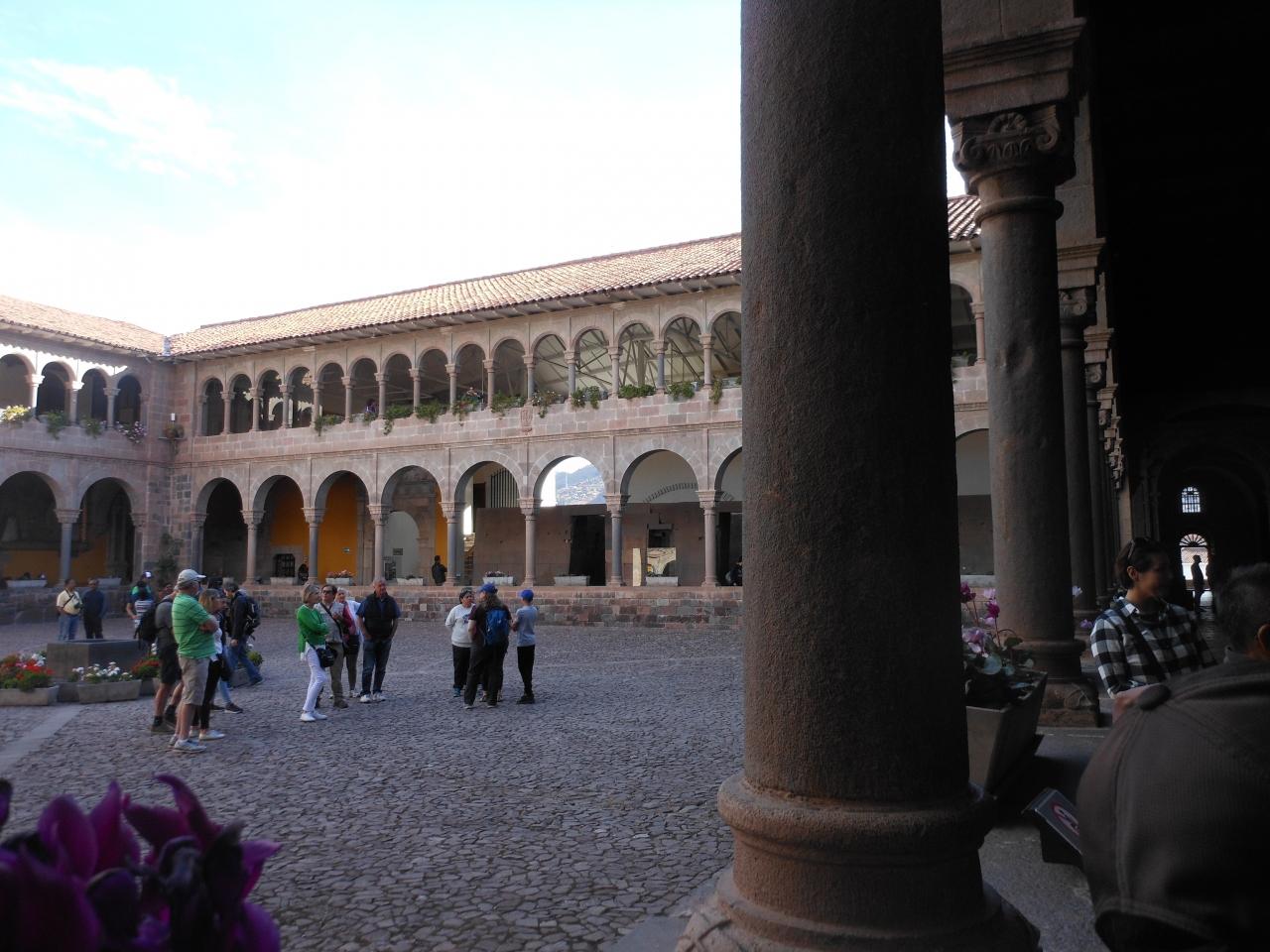 インカ帝国時代の小神殿が並び、スペイン建築で覆われているのが見えます。