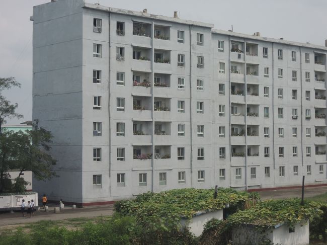 大同江の南にも高層マンションが林立している。ただずいぶん老朽化している雰囲気だ。