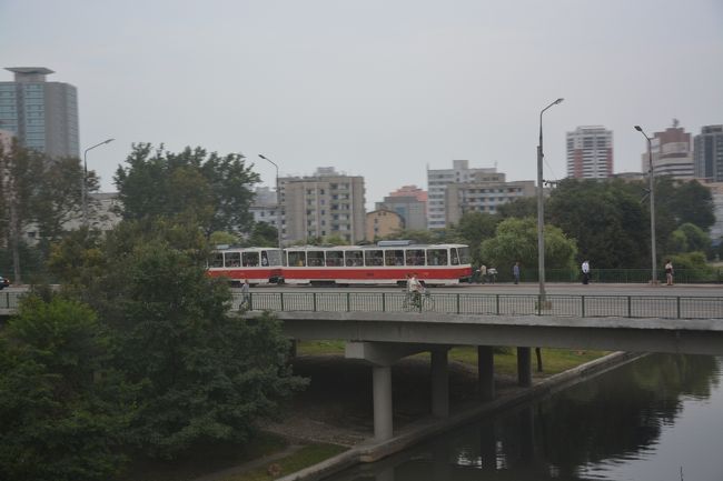 天候は朝から雨交じりであまりいい気はしない。通勤客が列をなして行き交う平壌駅前を通過して大同江沿いの道路に出た。そのまま南へ向かうハイウェイへ向かうことになる。しばらくは路面電車と併走することになる。
