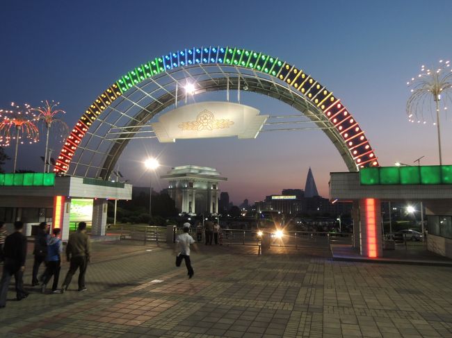 9月は天候がいいというのが理由で訪問したので明日には回復してもらいたいものだ。ホテル周辺はライトアップされた高麗ホテルと平壌駅くらいしか目立つ建物はない。