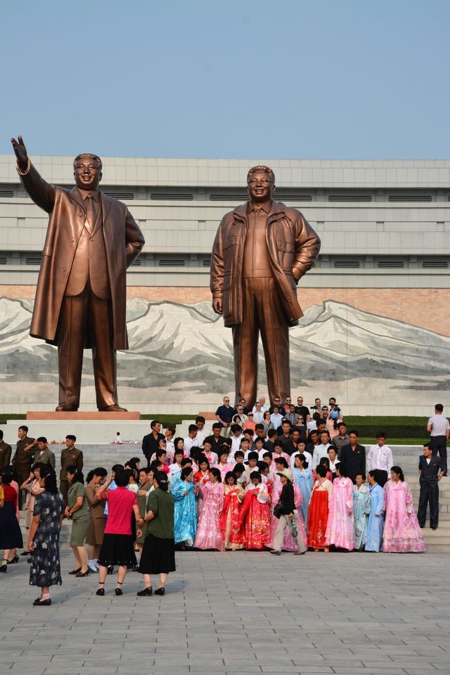 2012年に金正日が死去した際、金日成の銅像も新たに建て直されたとのことだ。なので銅像はいずれも真新しい。 -