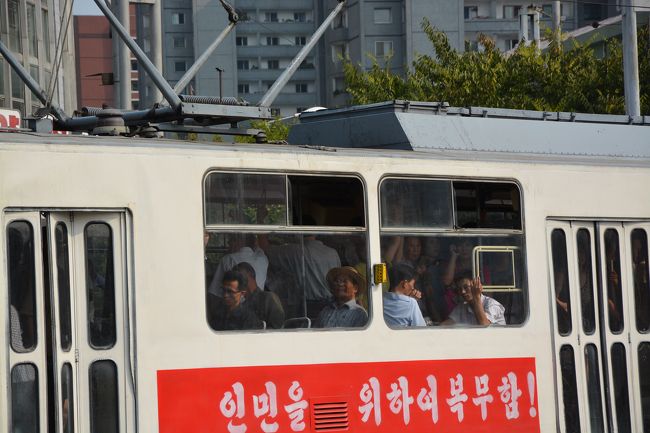 平壌市内を走る路面電車。観光客が乗る場合チャーターしなくてはならないらしい。