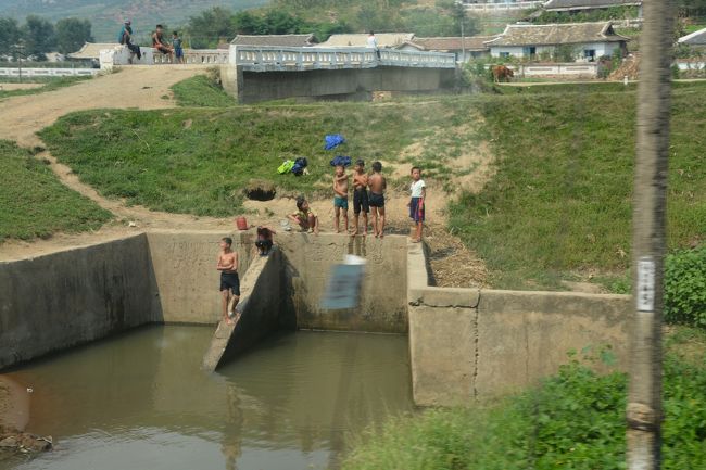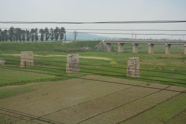 川を渡るとき必ず橋桁の残骸が平行している。かつて日本統治時代複線で満州へ向かう大動脈だった時代の名残を感じる。 -
