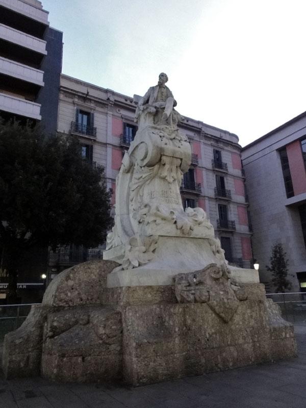 通り沿いの劇場広場で、高いところに座っているのは、台座に刻まれた名前から、詩人で劇作家のフレデリック・ソレル。