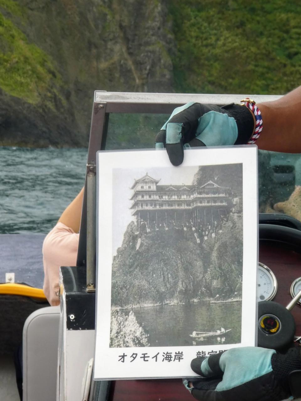 でも、ガイドさんが手に龍宮閣の写真を持っている時は