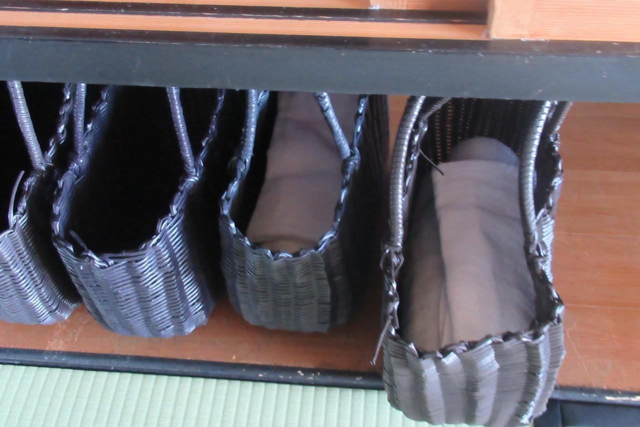館内はこの下駄や部屋に備え付けの作務衣でどこでもうろついてOK。 -