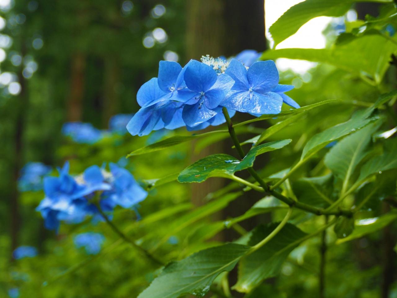 青いガクアジサイ