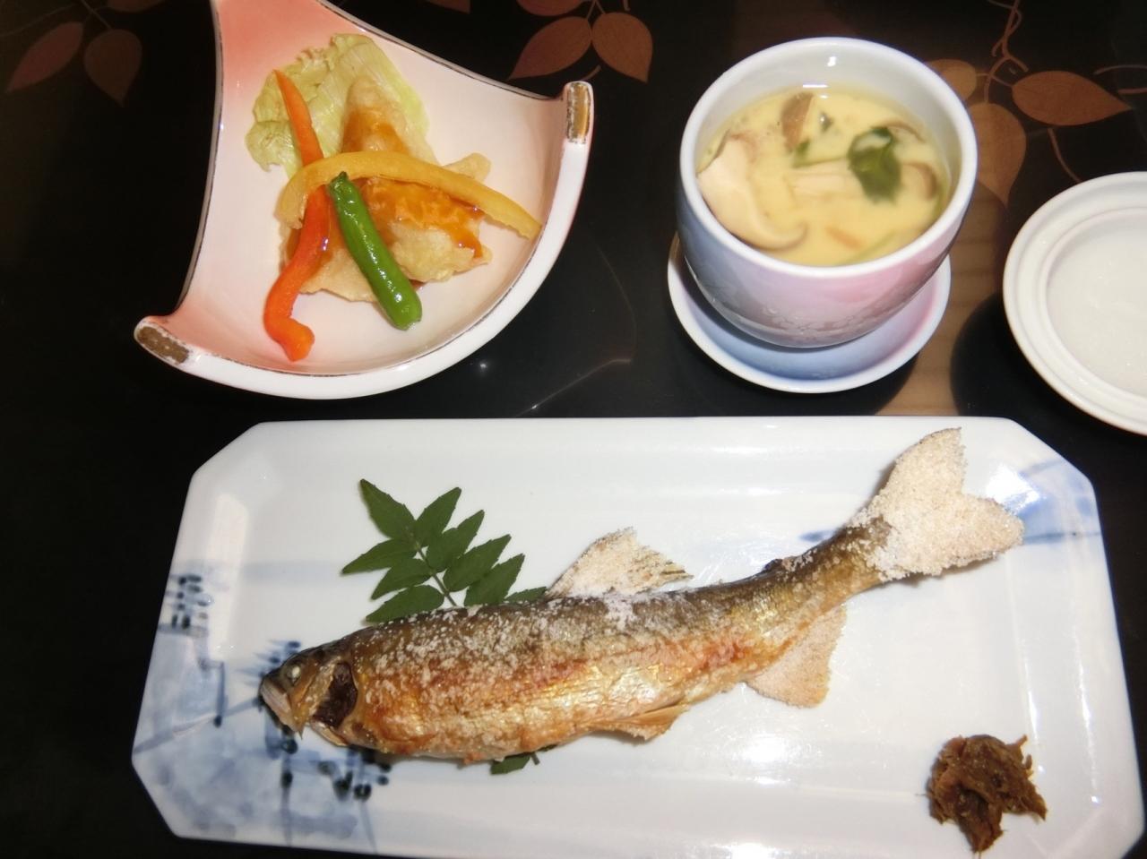 鮎の塩焼き、茶碗蒸し、秩父名物の味噌ポテト