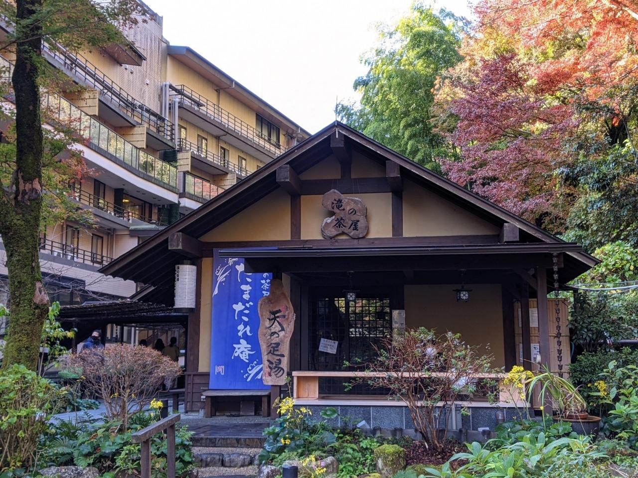 玉簾の瀧(たまだれのたき)は露天風呂からも見える。