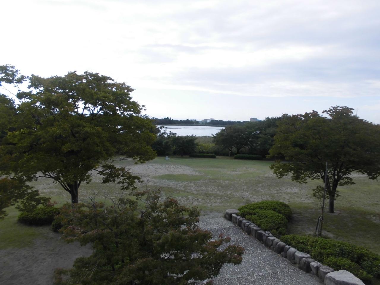 木の隙間から鳥屋野潟が見えました。