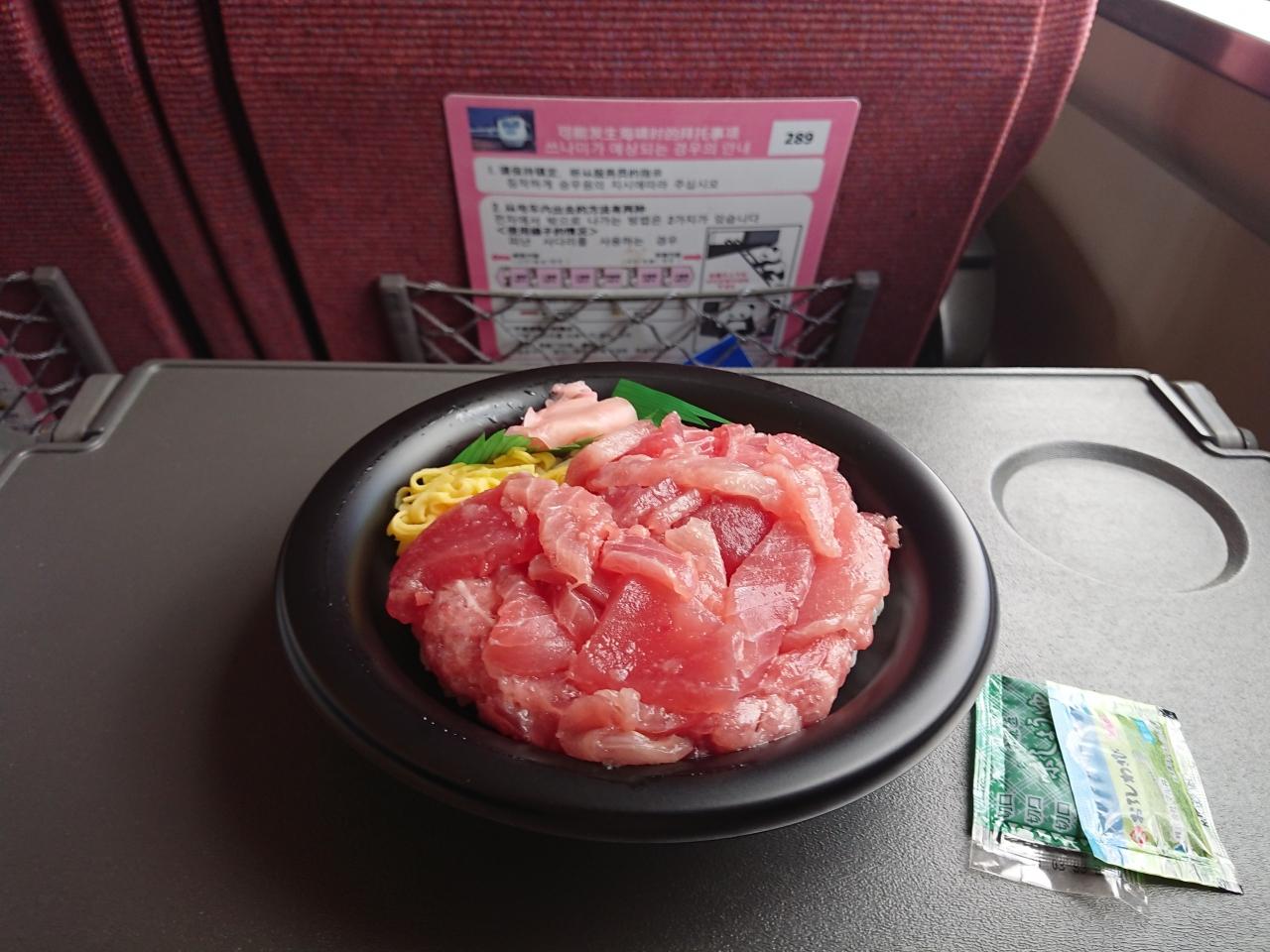 電車の中でまぐろ丼って、なかなか嬉しいシチュエーション。
