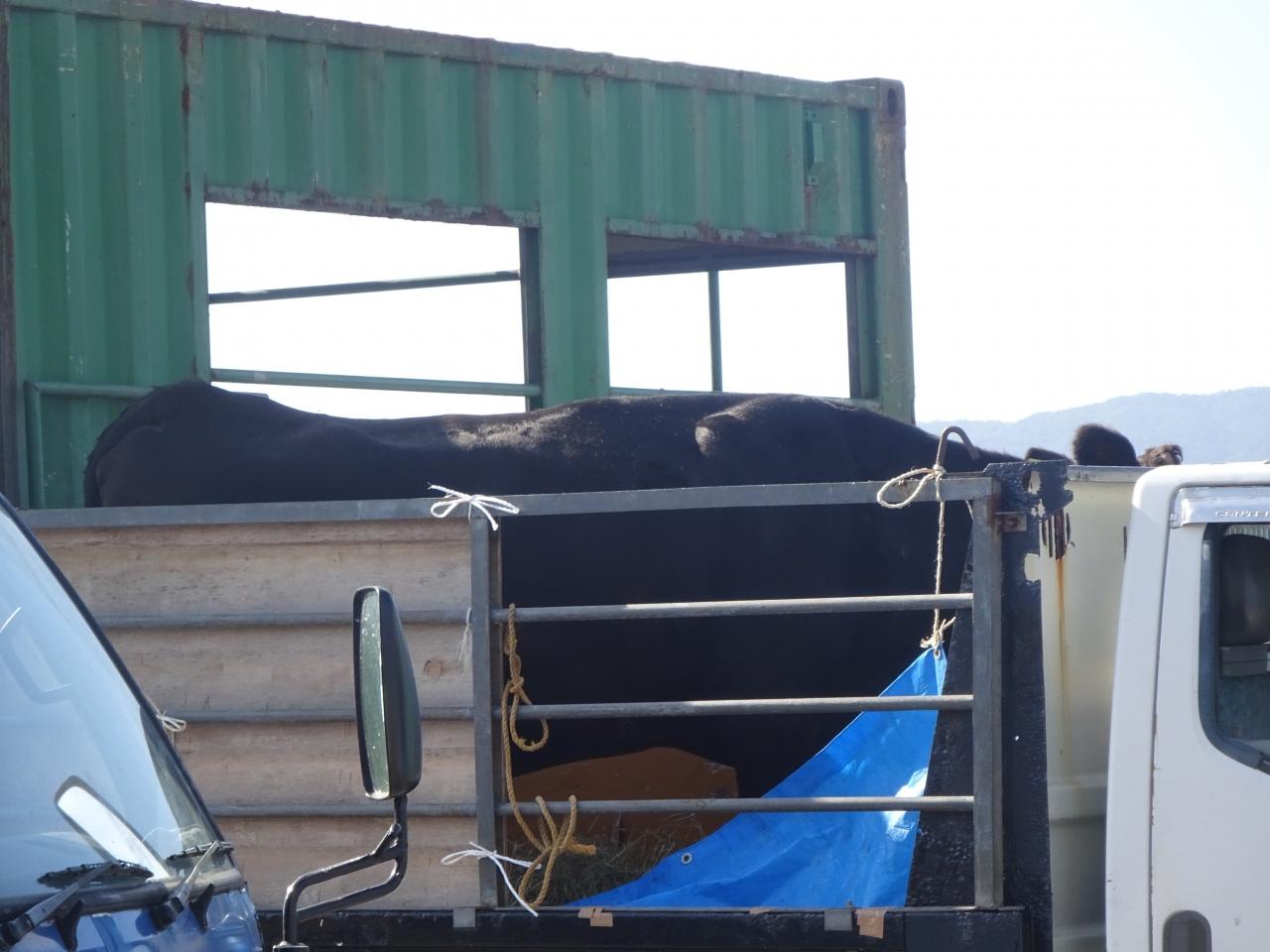 フェリーで加計呂麻島より運ばれ、売られていく牛さん