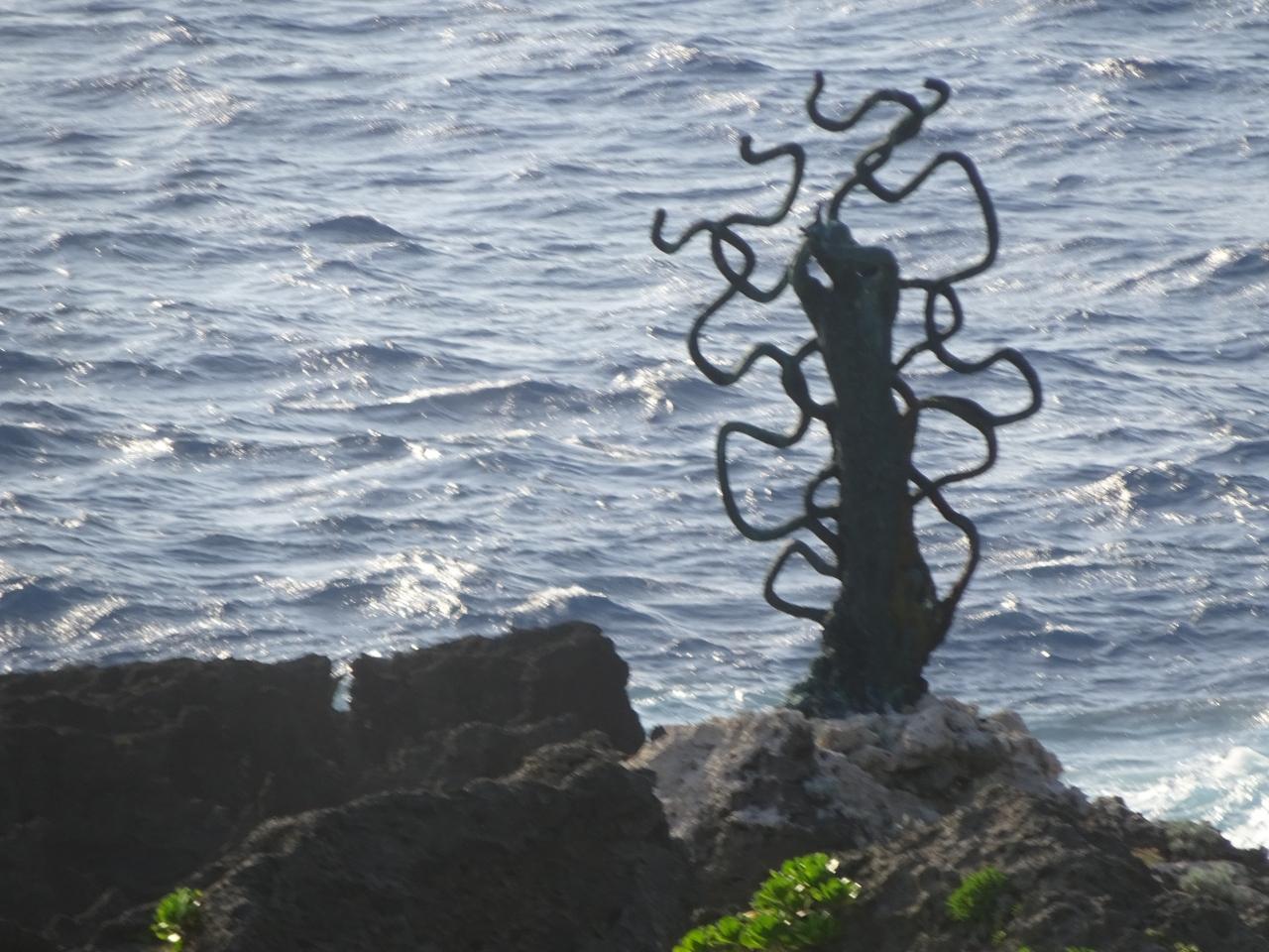 5)犬の門蓋(14:25-43)(隆起珊瑚礁で遊歩道 展望台 断崖 奇岩 メガネ岩 観音像を見学し、天城大橋(秋利神川)を通り