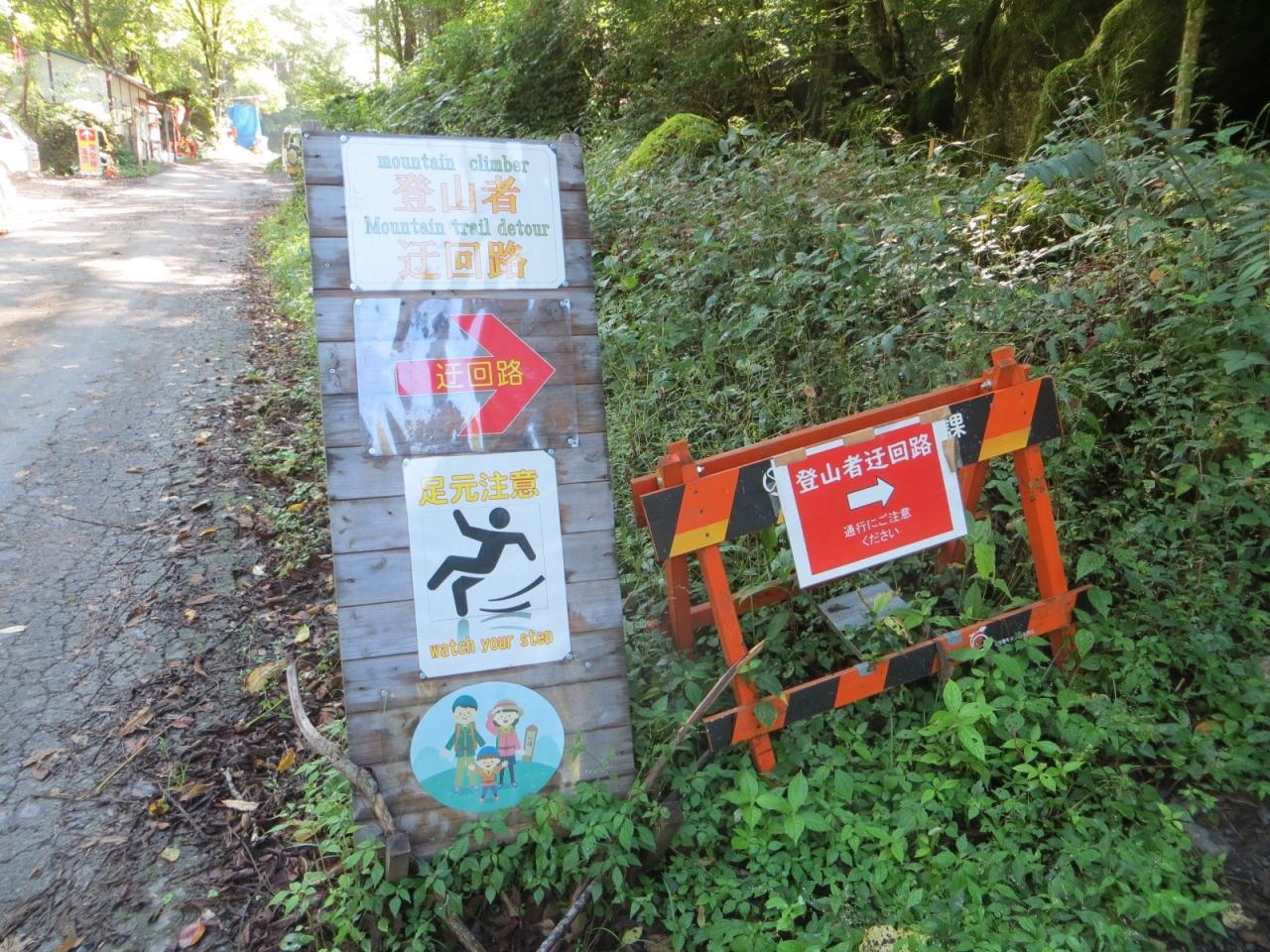 林道が流されて復旧工事中なので、ここから仮設の登山道を歩きます。林道なら6kmで1時間半ぐらいですが、仮設の登山道なので便ヶ島まで2時間かかりました。 -