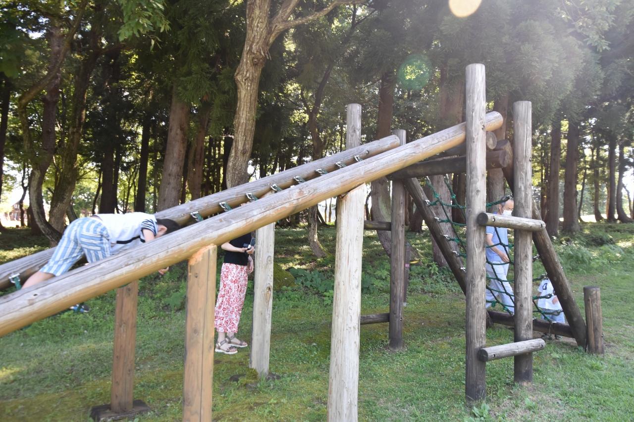 少し歩いたところの森影に、アスレチックができるところもあります。