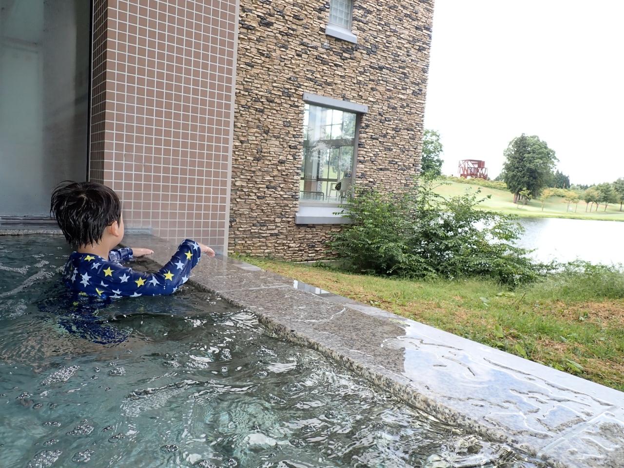 プールサイドにジャグジーがあって、激しい泡に体が浮きます。