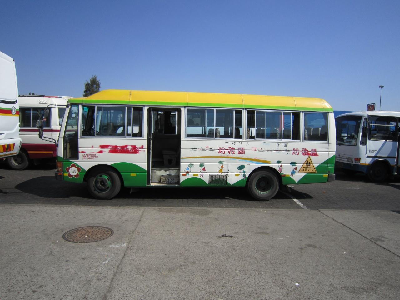 ボツワナでも日本の中古バスをよく目にする。 -
