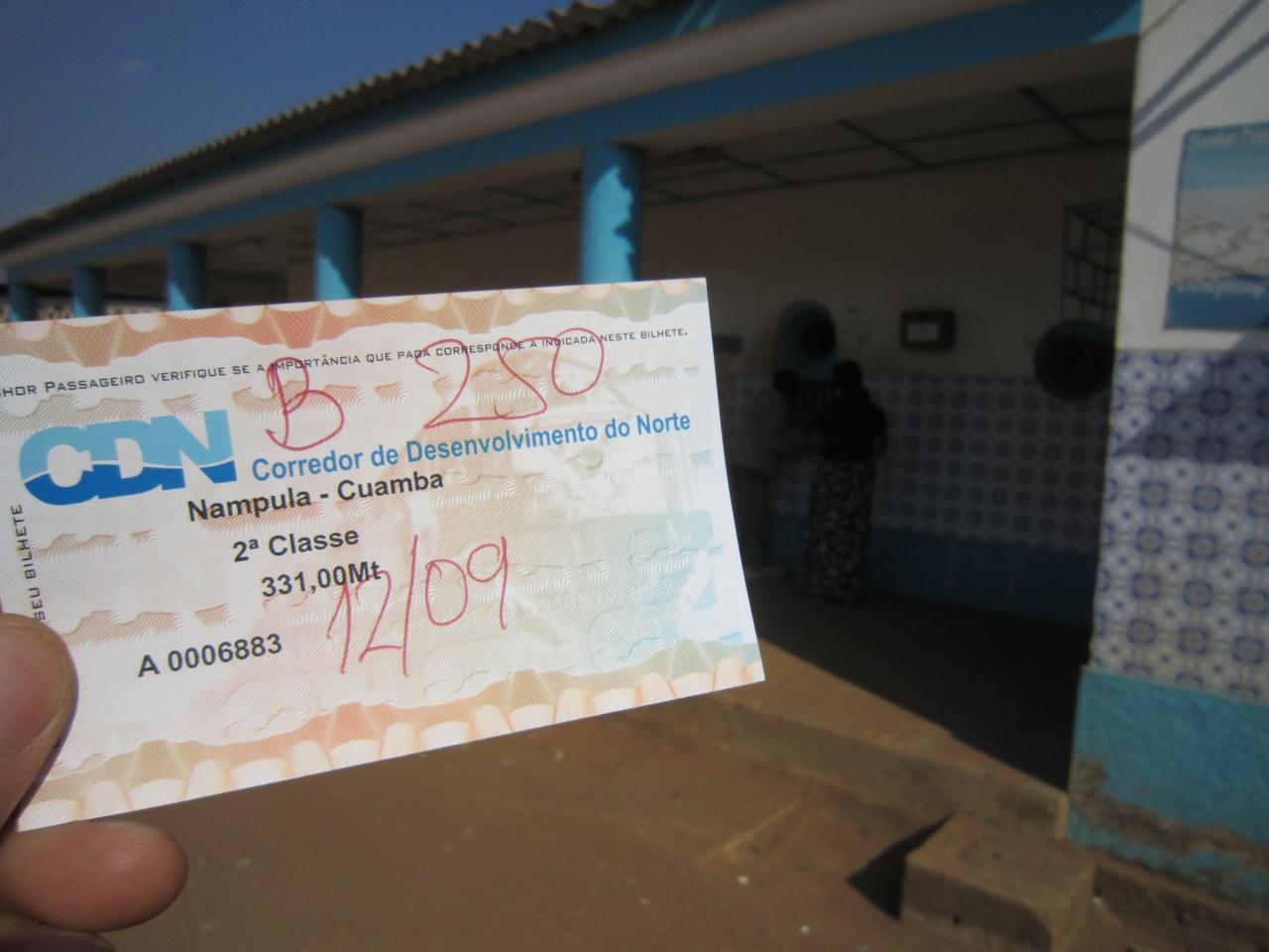 午後3時前切符を買いに向かった。列車がもうすぐ到着するようで駅前はミニバスや出迎えの人でにぎわいだした。この町が一番にぎわうのは列車が到着するこの時間なのだろう。切符売り場の窓口は開いており、なんなく切符を買うことができた。ジンバブエの悲惨なイメージがあったので窓口に客が誰もおらず拍子抜けしてしまった。二等は一応座席指定で出発は朝5時だ。