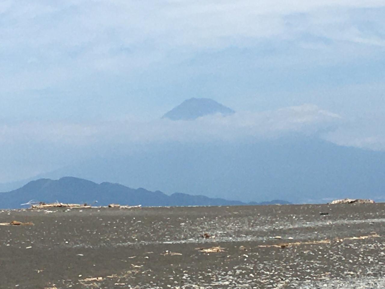 左に遠く伊豆半島の山々が見えるということですが、遠くに見えているのがそうなのかな。 -
