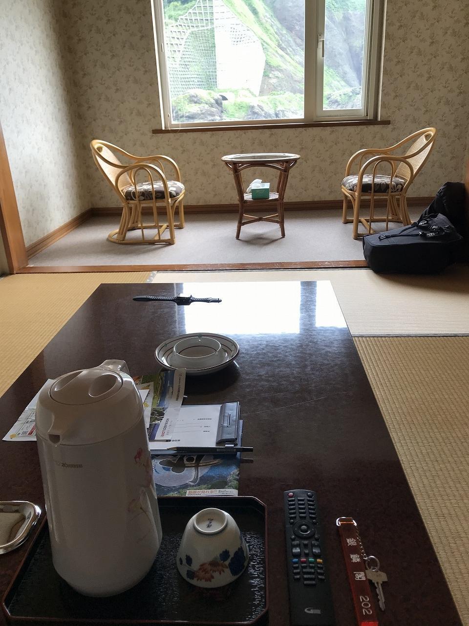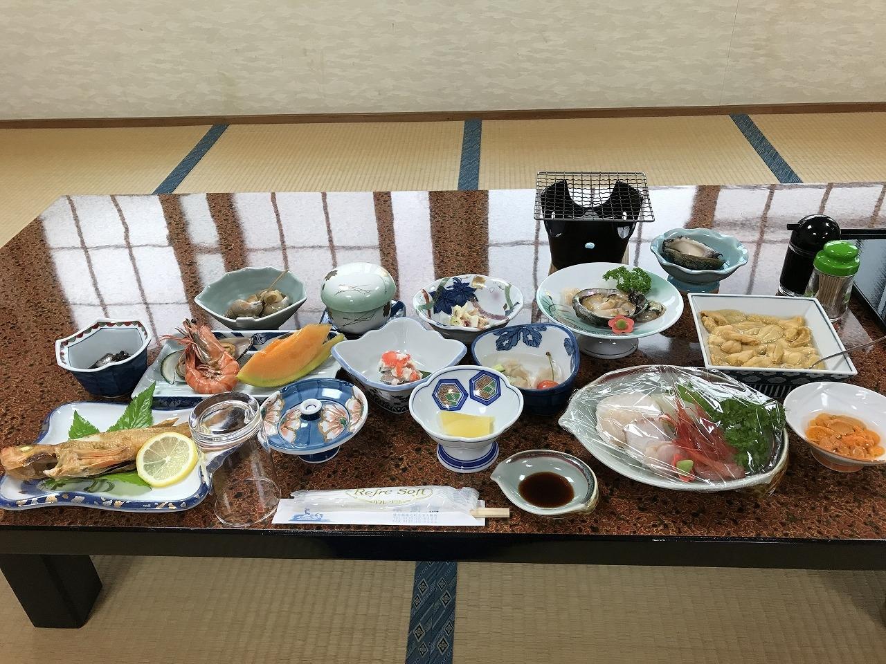 食事はお部屋に持ってきてくれます。民宿 日本海 宿・ホテル