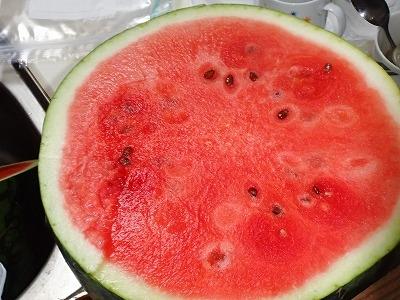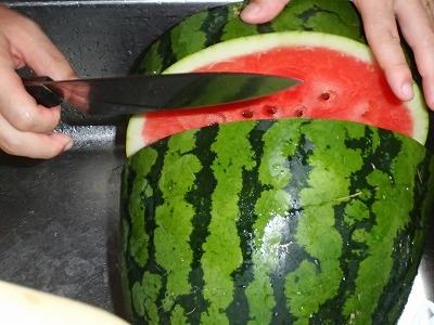 届いた西瓜、入刀です -
