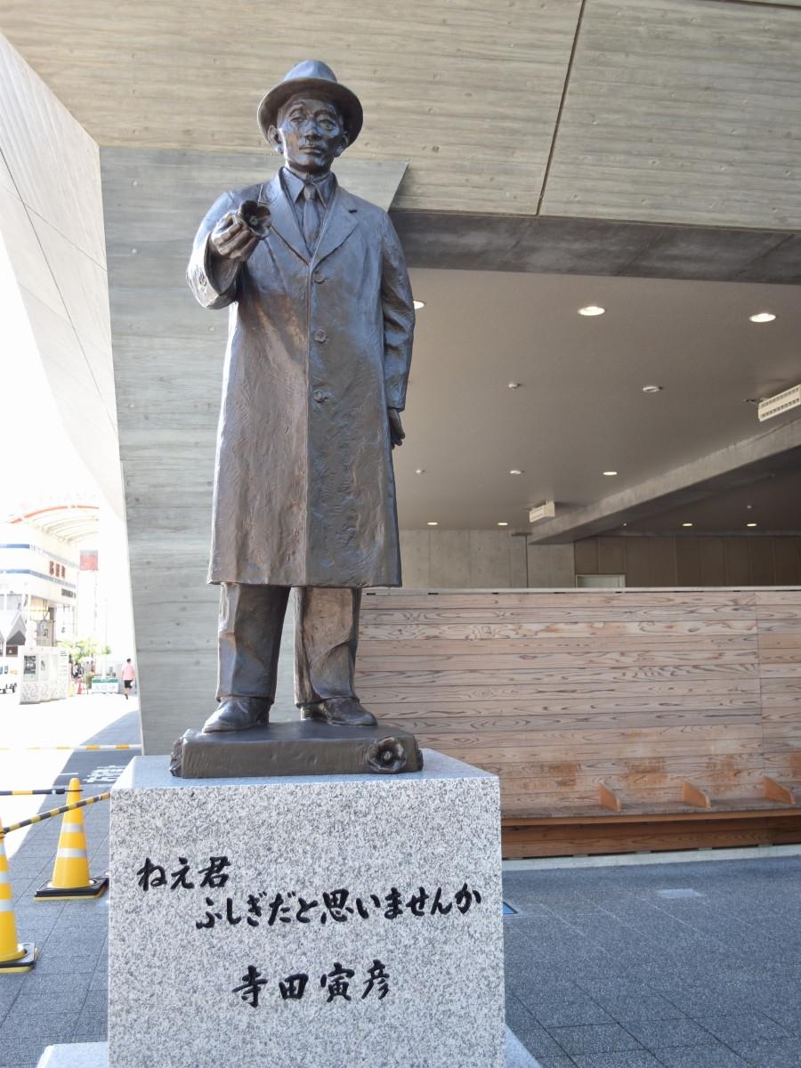図書館などが入るオーテピアの前には、寺田寅彦の銅像。