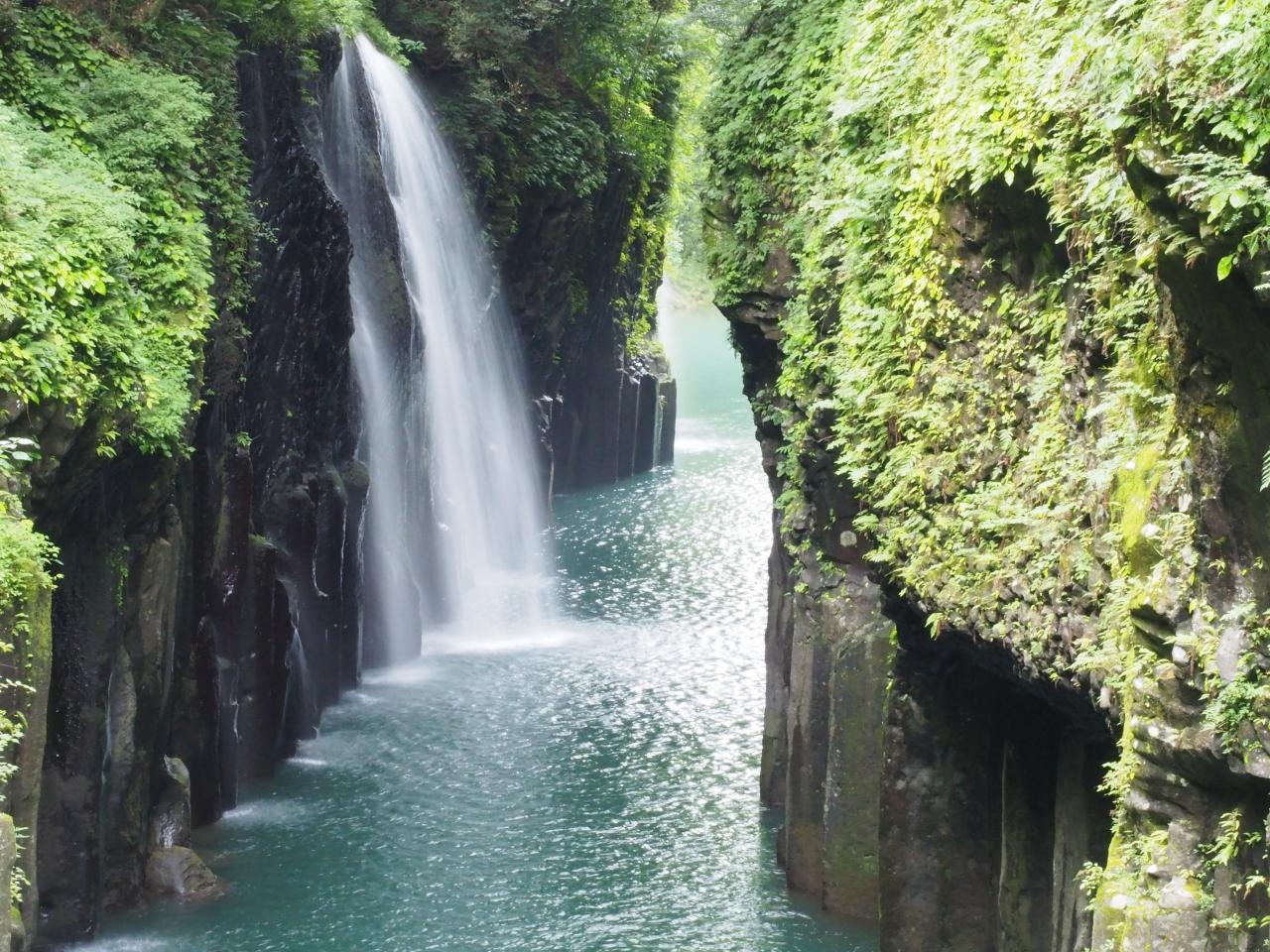 阿蘇山の火山活動によって噴出した火砕流が、長い年月をかけて侵食され、 柱状節理や深いV字型の美しい峡谷高千穂峡 自然・景勝地