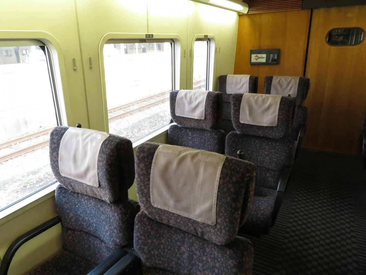 昭和の末期に製造された車両で、このような窓割・座席の特急車両である。ご想像通り、元グリーン車なのである。だから★1個消費してでも乗ろう。 -