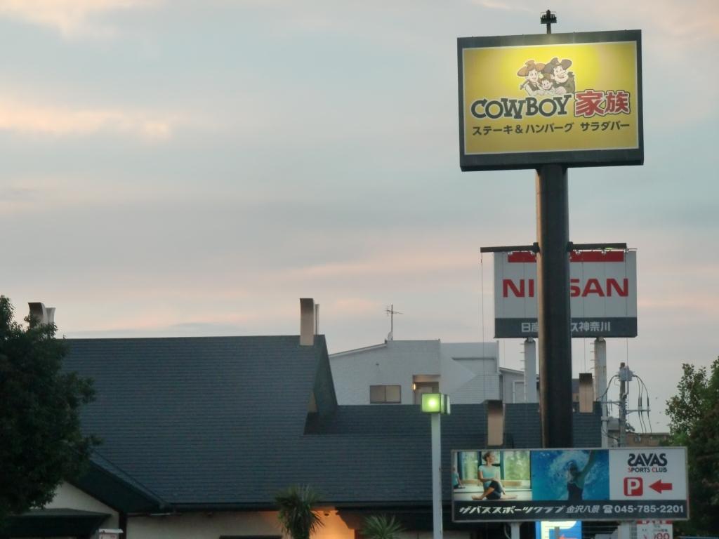 隣は日産プリンスの販売店、対面にもプリンスと神奈川日産の販売店と整備工場か並んでいる。日産追浜工場に近いとは言え、全車種ディスプレイして試乗もできる広い店舗になっている、ということはない。カウボーイ家族 金沢八景店 グルメ・レストラン