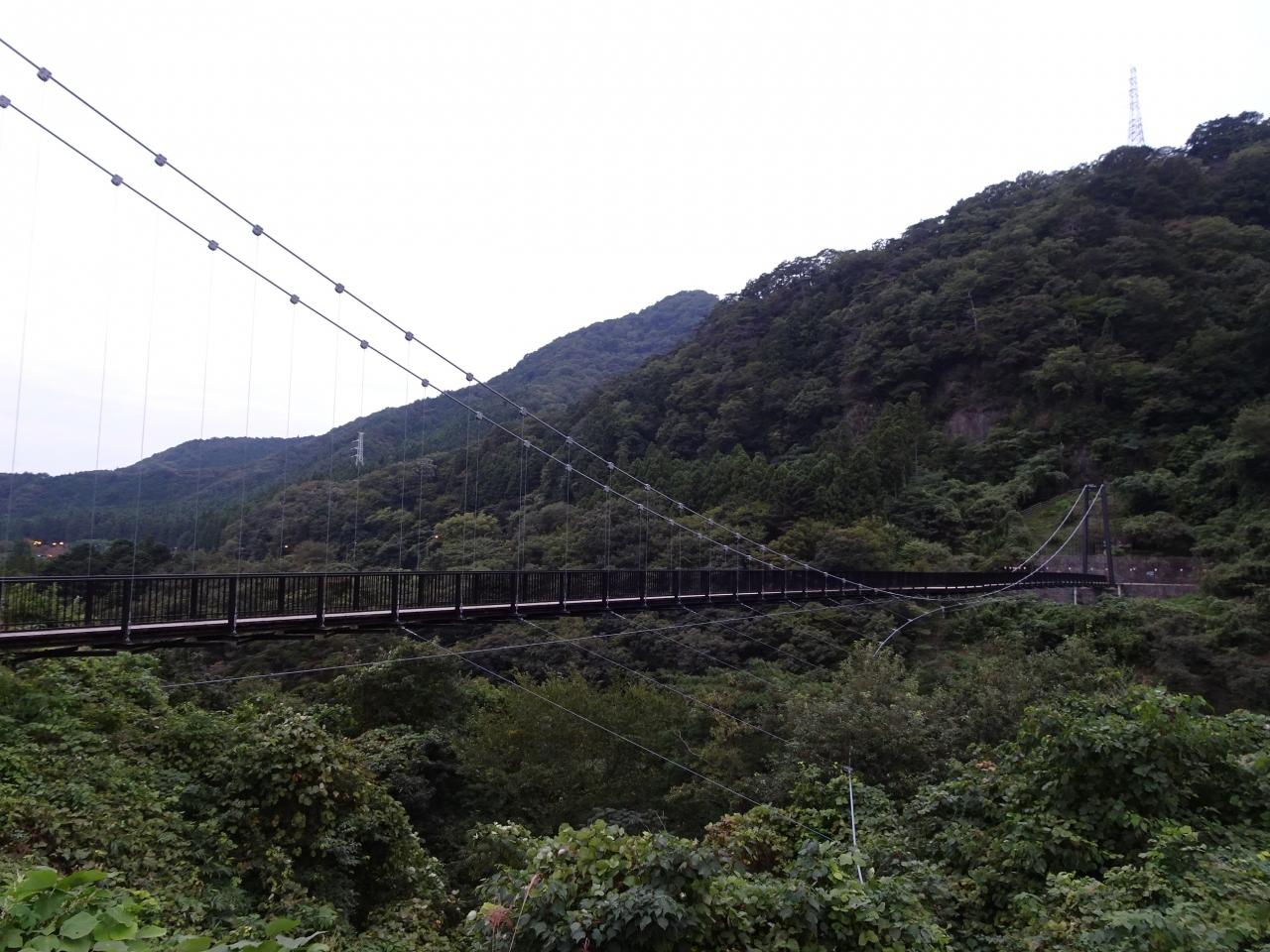 翌朝、朝食前に朝の散歩。ホテル近くの吊橋を渡って対岸へ。
