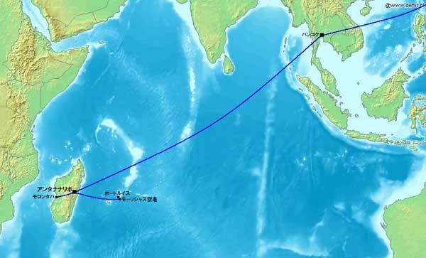 空路モーリシャスへ移動です。この写真を撮ったあと空港の職員に写真を撮るなと怒られました。一応マダガスカルでは空港は撮影禁止です。しかし後日、バンコクへ戻るとき、日本人のおばさんが写真を撮りまくっていたけれど何も注意されていませんでした。